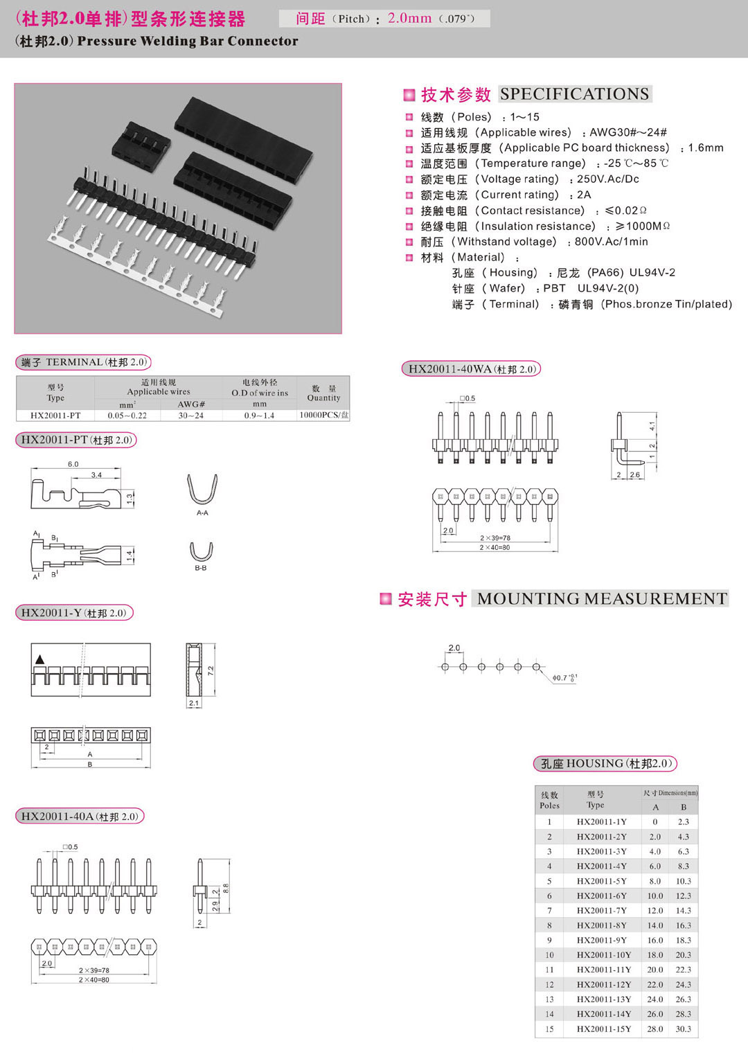 HX20011- (杜邦2.0單排)連接器